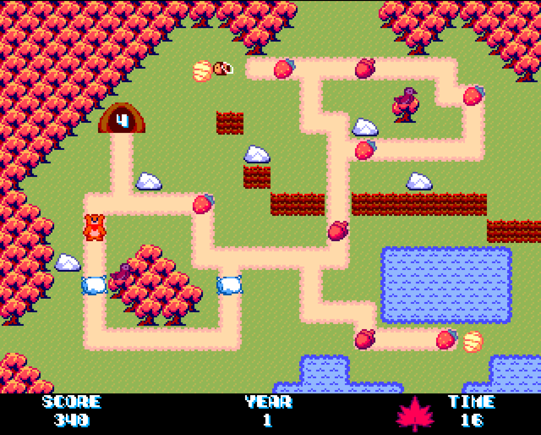 Cute little game! I like the nicely timed music changes. Spring always feels effortless and autumn stressful, that's good, thematic haha. Didn't reach 4000 score in any level but getting 3000 is a fine challenge